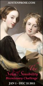 After you have read or seen one of the selections, go to Austenprose and click on the S&S Challenge tab, then comment on the selection. If you have a reading or Austenite blog, be sure to post your blog address to connect to your review on your site. There will be prizes awarded and monthly giveaways, so make sure you comment on each of the Challenge reviews!