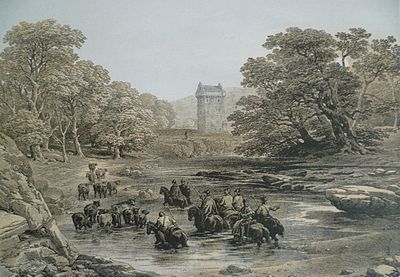 ‘They were cruel,coarse savages, slaying each other like the beasts of the forest; and yet they were also poets who could express in the grand style the inexorable fate of the individual man and woman, the infinite pity for all cruel things which they none the less inflicted upon one another. It was not one ballad- maker alone but the whole cut throat population who felt this magnanimous sorrow, and the consoling charms of the highest poetry.’ Many of the Border Ballads still survive today, due to the avid collecting of the famous Border poet, Sir Walter Scott (1771-1832), himself the descendant of a famous border clan.”