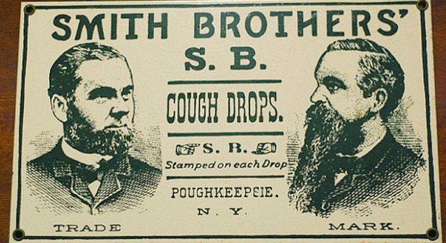 When imitators started flooding the market with similar names, the Smith Brothers decided to trademark their product with their own images. The drops were originally sold from large glass bowls place on store counters. Customers put the drops in envelopes to be taken home. The word “Trade” was under William’s picture, and the word “Mark” under Andrew’s. Therefore, the two men were often referred to as “Trade” and “Mark,” rather than by their real names.