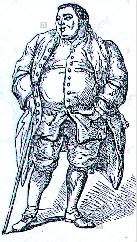 The Dictionary of National Biography says of Grose, “Grose has been described as a sort of antiquarian Falstaff. He was immensely corpulent, full of humour and good nature, and ‘an inimitable boon companion’ (Noble, Hist. of the College of Arms, pp. 434-438, Gent. Mag., 1791, vol.lxi, pt. ii. p. 660). There is a full-length portrait of him, drawn by N. Dance and engraved by F. Bartolozzi, at the beginning of his ‘Antiquities of England,’ vol. i. 1st ed. (for other portraits, see Noble, pp. 436-7; and Gent. Mag. 1791, vol. lxi. pt. i. pp. 493-494). Grose lived chiefly at Mulberry Cottage, Wandsworth Common (Brayley, Surrey, iii. r99). He married Catherine, daughter of Mr. Jordan of Canterbury, by whom he had two sons and five daughters. The eldest son, Colonel Francis Grose, was deputy-governor of Botany Bay (Notes and Queries, ser. ii. 47, 257, 291).”