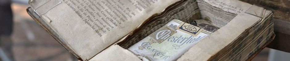 Public Domain ~ A book with a concealed space for hiding cigarettes. https://en.wikipedia.org/wiki/Smuggling#/media/File:Cigarette_smuggling_with_a_book.JPG