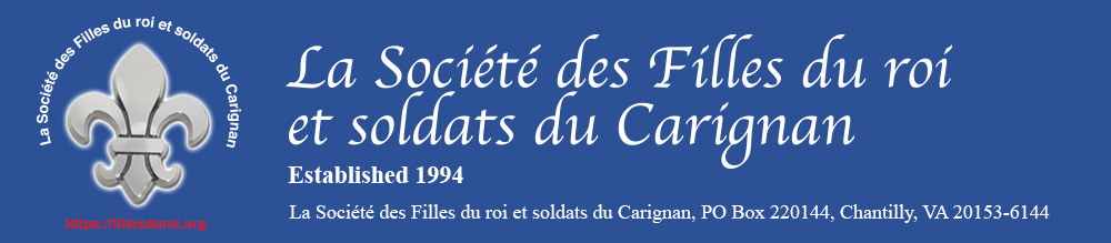 La Société des Filles du roi et soldats du Carignan, has links to a listing of the Filles du roi and other information