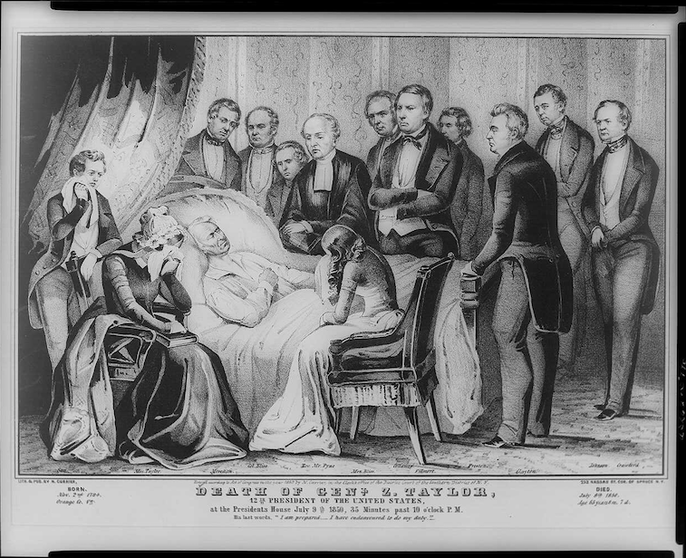 Margaret Taylor, like many women, did not enjoy having her image taken. In fact, the engraver for the image of her husband’s death was quite upset with the fact she held a handkerchief over her face. Her prediction of her husband’s death had come true. Two years into his term, Zachary Taylor died of cholera. Margaret became the first First Lady to serve during the death of her husband.