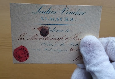 We assume around 1815, after the war with Napoleon ended, Lady Jersey took over Almack’s. The announcements seem to have ceased, the assemblies changed to Wednesday nights, and they were held just about every week during the season. The patronesses greatly restricted its membership. A person could not simply show up at the door and expect admittance. To attend, the person had to procure a “voucher,” signed by one of the patronesses, who are said to have kept a list of whether a person was “good ton” or “bad ton.” This exclusivity element lasted until around 1824.