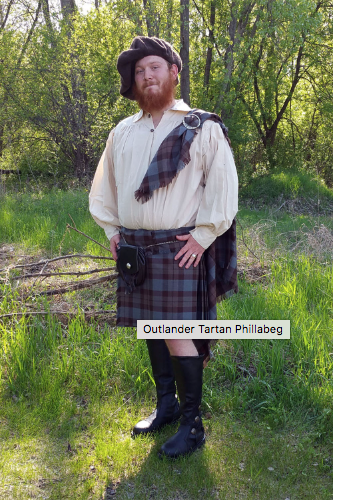 Though we do not know the exact time period (reports vary from anywhere between the 6th C to 16th C), the philabeg, or what we now call a “kilt,” evolved from what was then known as a “belted plaid.” The belted plaid was a full length garment, also referred to in some documents as the “great kilt,” which was worn with the top half draped over the shoulder as a cloak. This long plaid was known in Gaelic as the feileadh mor.
