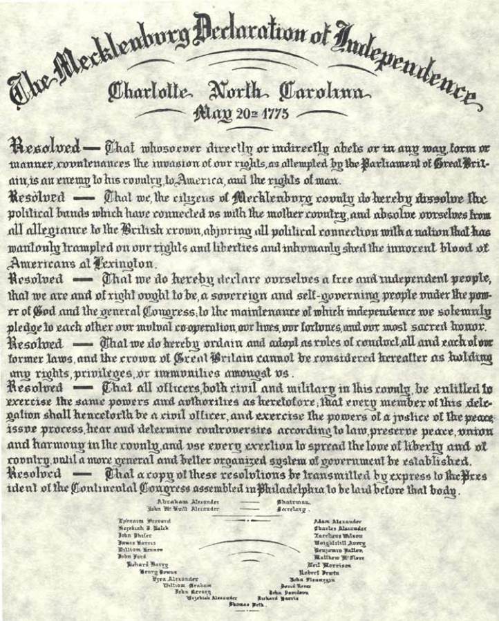 The Mecklenburg Declaration of Independence, a Year Before Thomas Jefferson’s Document