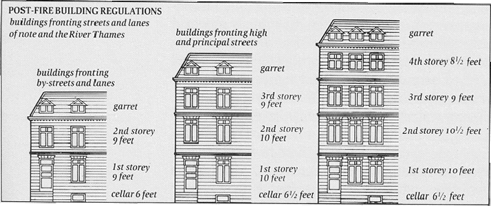 The prescribed heights of houses, as decreed in the 1667 Rebuilding Act