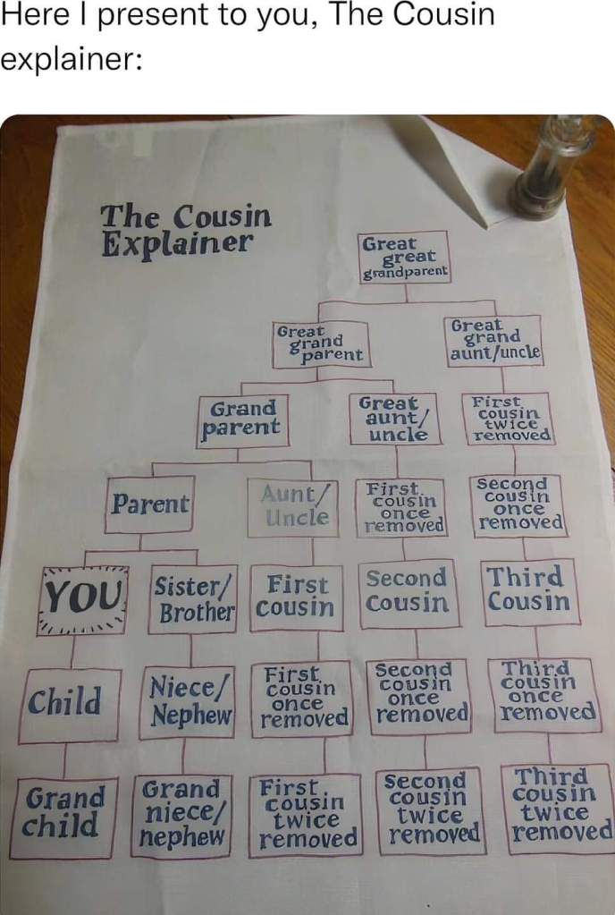 For those of you trying to figure out cousins, I offer you The Cousin Explainer: