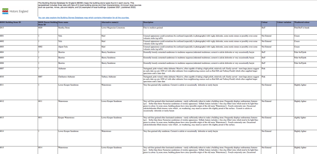 “This guide is one of a series for each English county. The guides draw on research and fieldwork with the British Geological Survey, geologists and building historians to compile the Building Stones of England Database. The guides are aimed at mineral planners, building conservation advisers, architects and surveyors, and those assessing townscapes and countryside character.”