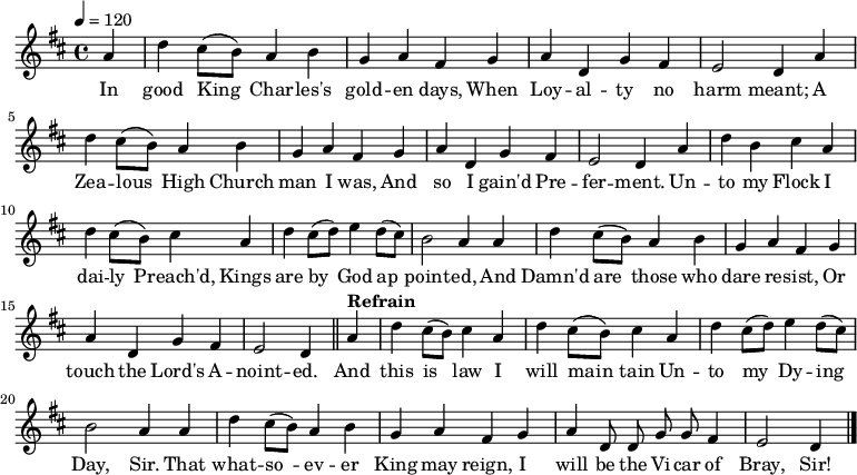 The generally known form of the song appears to have been based on an earlier version, “The Religious Turncoat; Or, the Trimming Parson”. The melody is taken from the 17th-century folk melody “Country Gardens” which in turn was used in The Quaker’s Opera, first printed in London in 1728, a three-act farce based on the story of Jack Sheppard which was performed at Bartholomew Fair. A parody of this parody song, “The American Vicar of Bray”, with the same chorus, was published in the 30 June 1779 edition of Rivington’s Royal Gazette, mocking the shifting loyalties of some American colonists during the American Revolutionary War. “The Vicar of Bray” is also referenced in the song “Parlour Songs” in the Stephen Sondheim musical, Sweeney Todd, although the song has been removed from more recent performances of that musical.