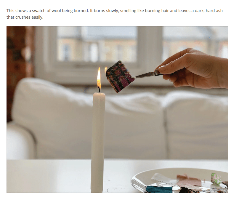 in the last year, I have added the concept of burnt wool to a mystery. What should a reader know about this? The website By Hand, which is located in London, has a new piece on what happens when a variety of cloth/material is burned. They even included pictures. By Hand London is an independent sewing pattern brand, established in 2012