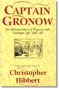 The Napoleon Series tells us something of Gronow. “Gronow, what can I say? Approach him with caution, even with Christopher Hibbert’s very helpful editing and annotations. R. H. Gronow (1794-1865) was one of those shadowy figures that drifted through the Regency and Victorian times. He rarely features in letters and diaries — but his memoirs, written in the 1860’s, seem to indicate he knew all the right people. Perhaps this was because he spent much of his time observing life around him, a commentator rather than a participant in events himself.